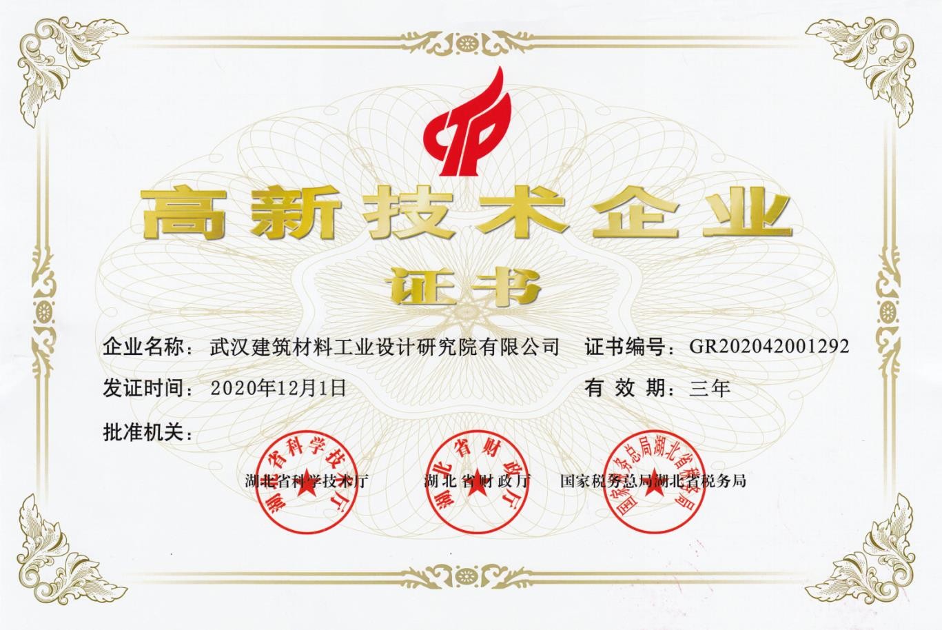 高新技術企業證書