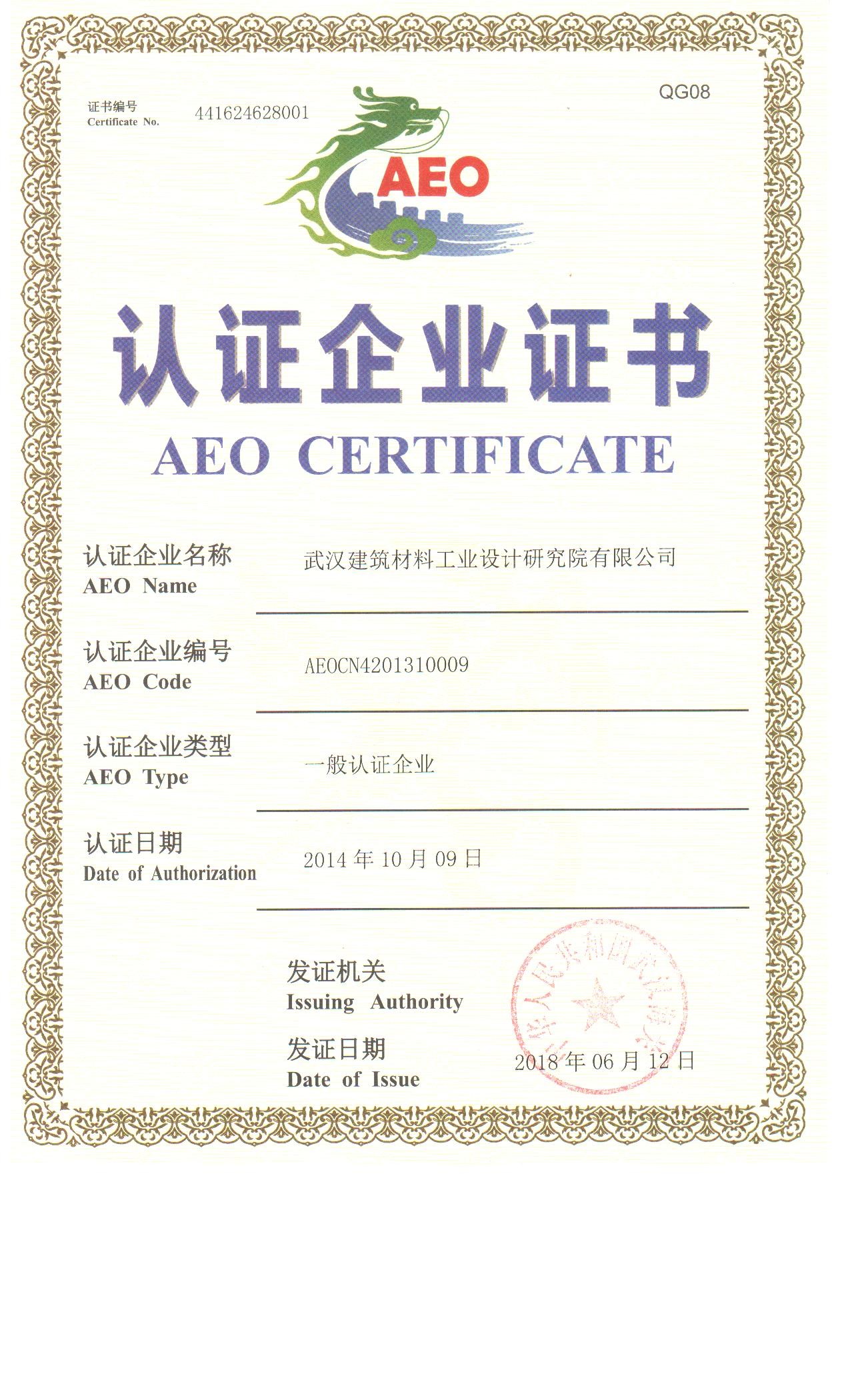 AEO認證企業證書
