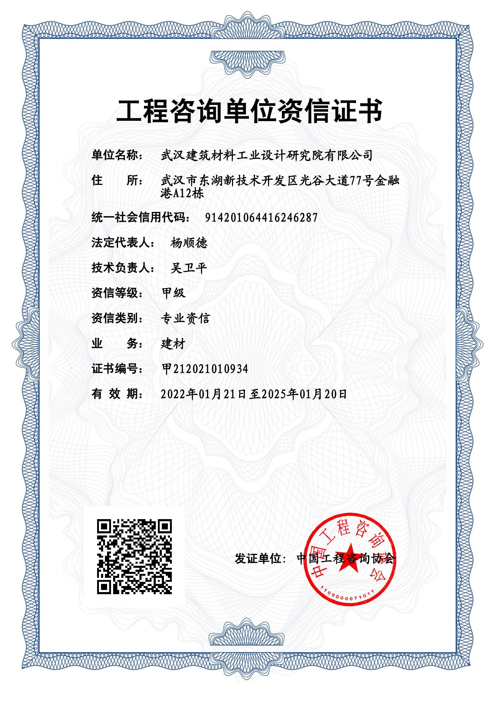 工程咨詢單位甲級專業資信(建材行業)