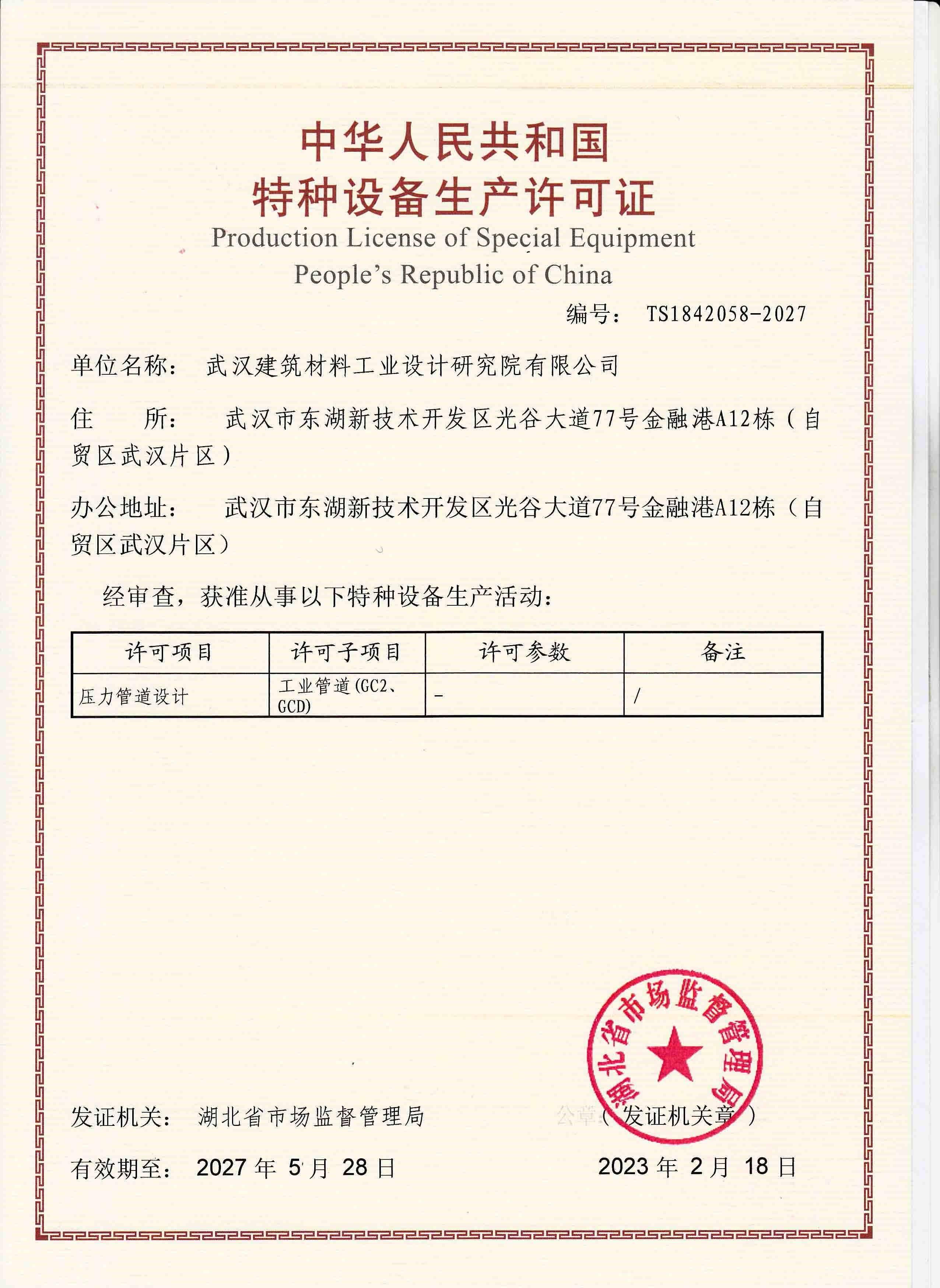 特種設備設計許可證(壓力管道)