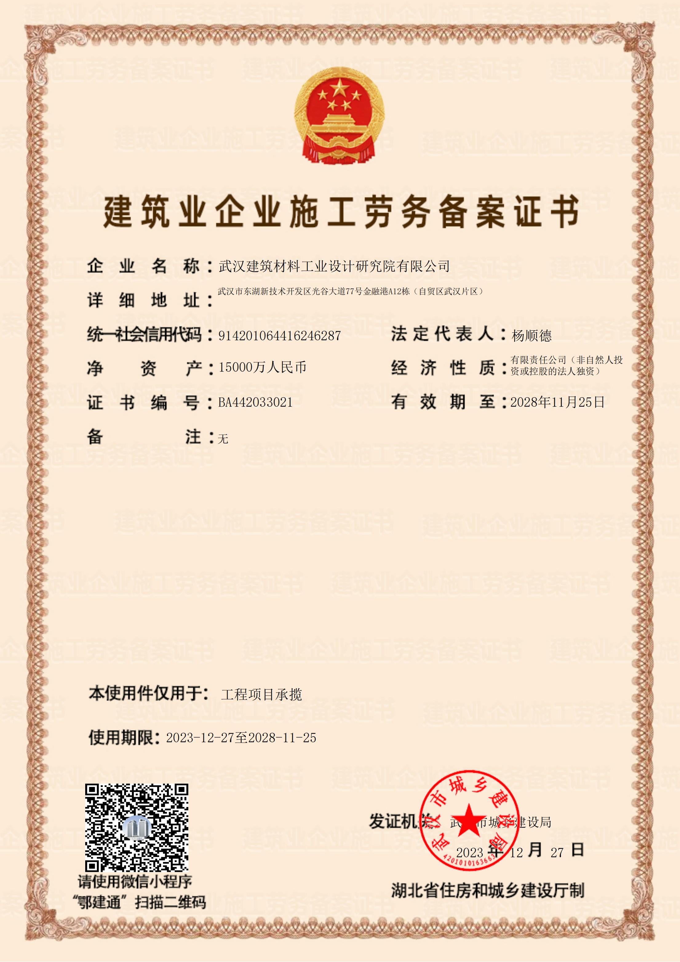 建筑企業施工勞務備案證