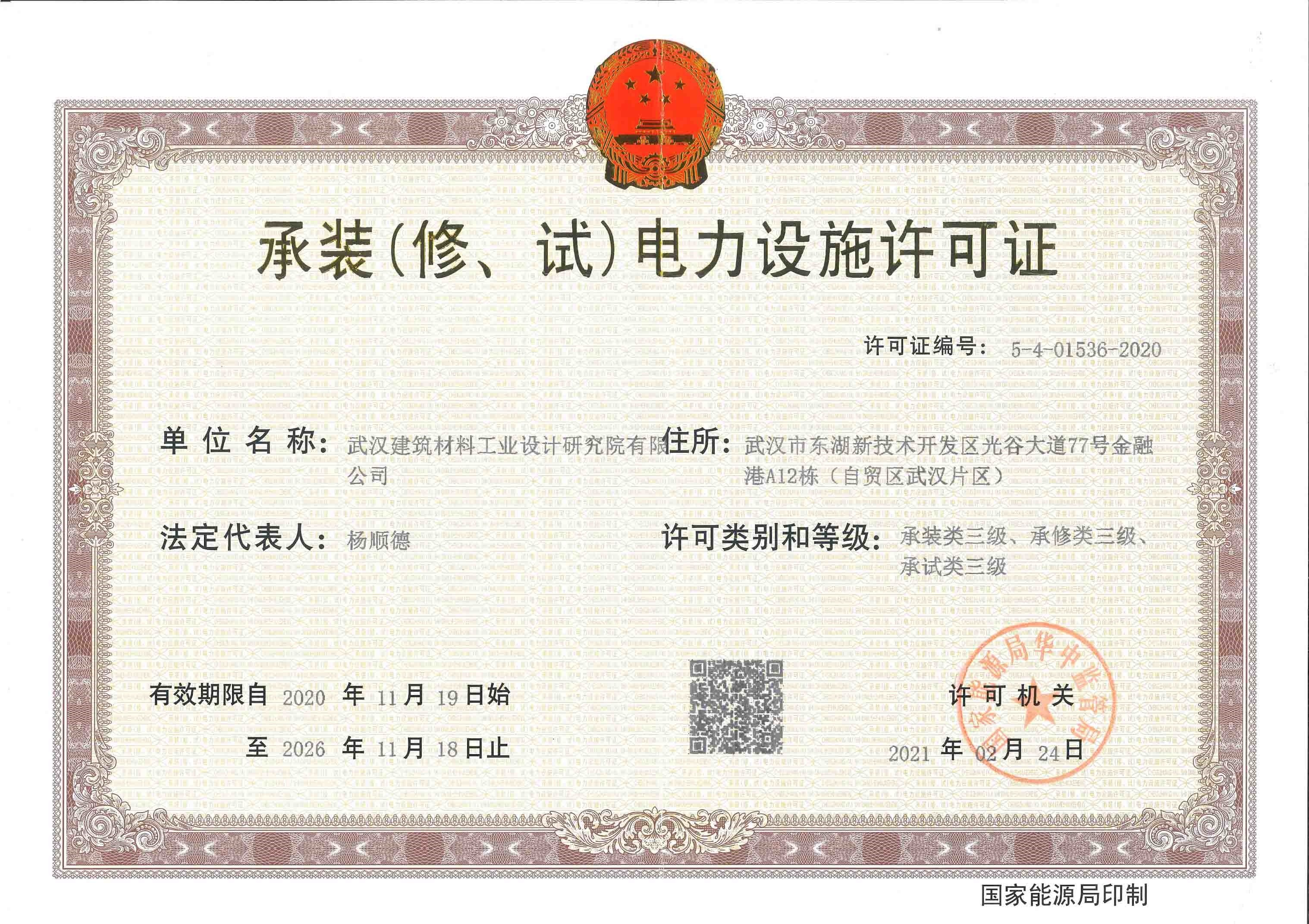承裝(修、試)電力設施許可證