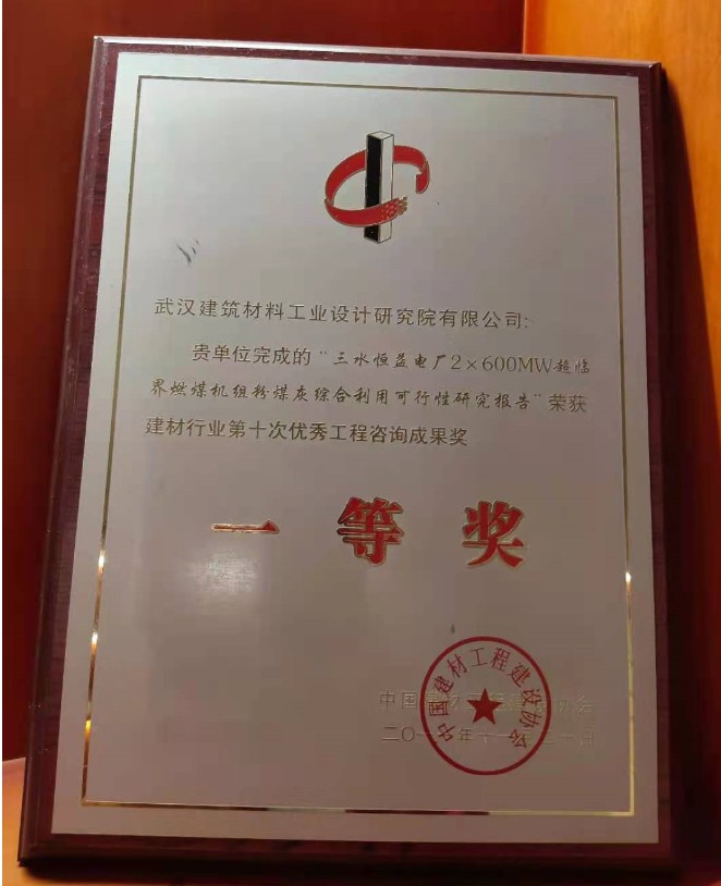 第九次建材行業(yè)優(yōu)秀工程總承包項(xiàng)目一等獎(jiǎng)1)