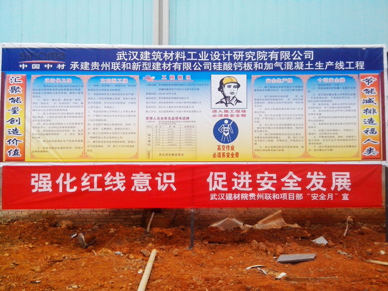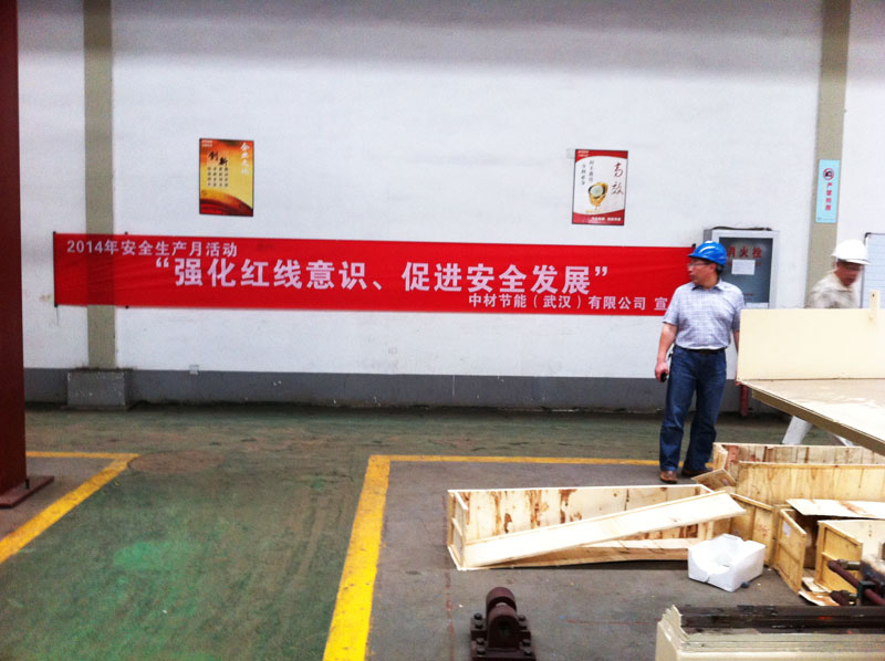 6月上旬, 在公司辦公樓、節(jié)能(武漢)車間、項目部現(xiàn)場懸掛安全生產的宣傳橫幅。