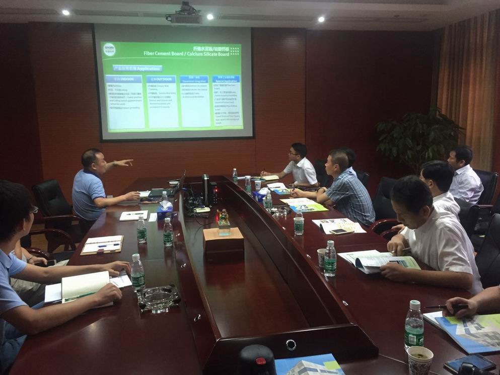 座談會期間,副院長吳衛平對研究院的歷史沿革、組織機構、業務范圍、行業科技研究方面做了簡要介紹,武漢建筑材料工業設計研究院市場部部長陳智華進一步詳細介紹了硅酸鈣板生產設備、技術、研發等情況。陜建投資集團董事長李衛軍就集團公司產業園建設、產品定位、發展規劃與武漢建筑材料工業設計研究院領導進行了交流。