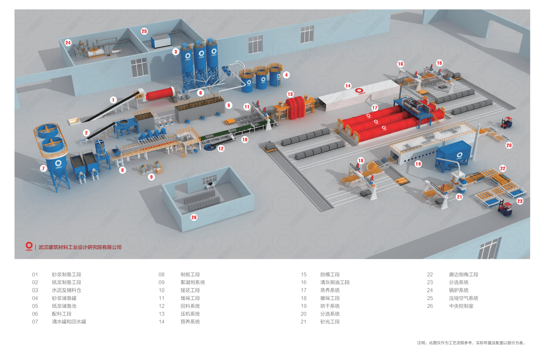 流漿法是生產纖維水泥制品的一-種方法,其特點是能采用濃度較大的料漿,鋪蓋在較長的無端毛布上,料漿進行了多臺次的真空過濾、脫水、擠壓成型等,形成了制品的坯體。