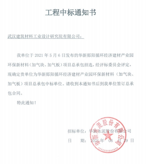 在武漢建材院新一屆領導班子的帶領下,新材事業部的骨干團隊與華新水泥股份有限公司簽訂了華新鄖陽循環經濟建材產業園環保新材料(加氣塊、加氣板)項目EPC總承包建設項目,該項目是華新水泥涉足環保新材料(加氣塊、加氣板)領域的第一個自建項目,也是武漢建材院與華新水泥在繼砂石骨料業務多年良好合作基礎上的又一次深化合作。
