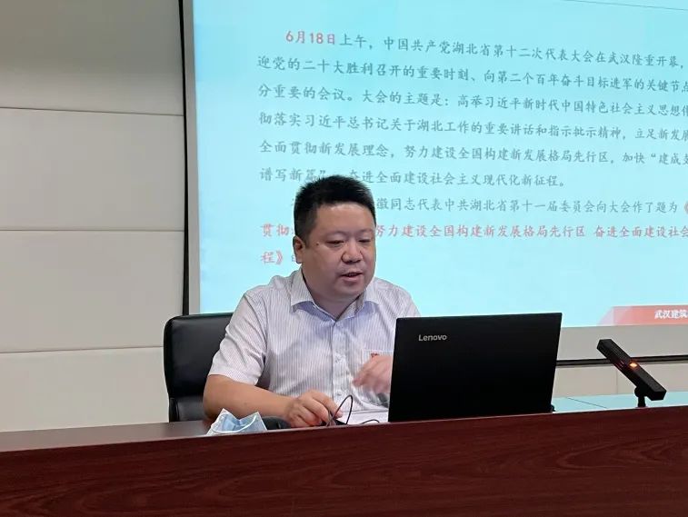 白寧從五個方面重點(diǎn)傳達(dá)并解讀了省委書記王蒙徽在中共湖北省第十二次代表大會上作的題為《立足新發(fā)展階段 貫徹新發(fā)展理念 努力建設(shè)全國構(gòu)建新發(fā)展格局先行區(qū) 奮進(jìn)全面建設(shè)社會主義現(xiàn)代化新征程》的報告,一是過去五年的工作回顧;二是準(zhǔn)確把握新發(fā)展階段湖北面臨的新形勢新任務(wù);三是完整準(zhǔn)確全面貫徹新發(fā)展理念;四是加快建設(shè)全國構(gòu)建新發(fā)展格局先行區(qū);五是堅持和加強(qiáng)黨的全面領(lǐng)導(dǎo),切實(shí)提高建設(shè)全國構(gòu)建新發(fā)展格局先行區(qū)的能力和水平。