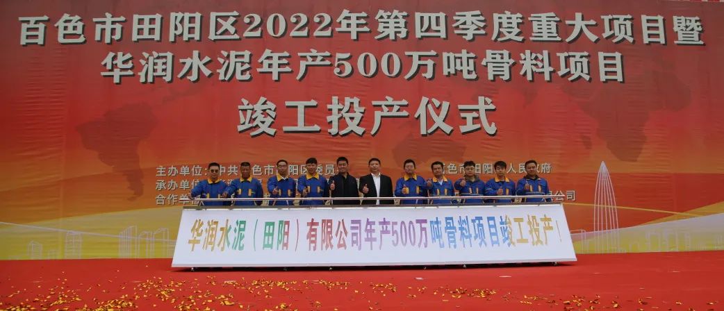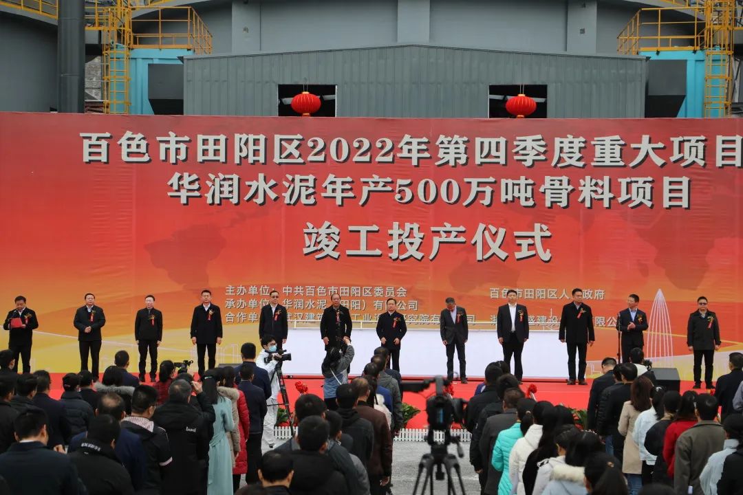 2022年12月9日,武漢建筑材料工業設計研究院有限公司(以下簡稱“武漢建材院”或“公司”)總承包的華潤水泥(田陽)有限公司年產500萬噸骨料項目(以下簡稱“華潤田陽骨料項目”或“項目”)舉行投產儀式。本項目于2022年6月21日開工,通過精心組織,科學施工,克服疫情、天氣等種種不利因素和極端條件的影響,實際施工工期165天,比合同約定施工工期提前135天完成,刷新了行業內同規模同類型項目的建設速度。