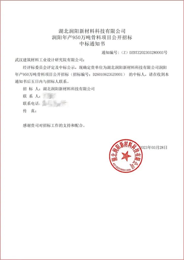 近日,武漢建材院中標華潤水泥所屬湖北潤陽新材料科技有限公司潤陽年產950萬噸骨料總承包項目。
