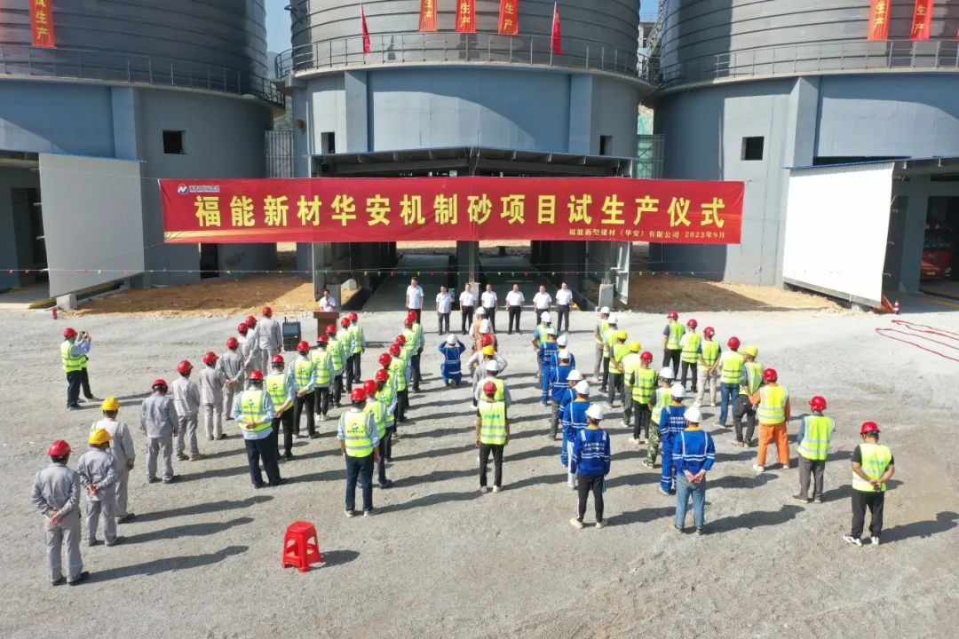 9月30日,在洋溢著中秋團圓和歡度國慶的喜慶氣氛中,由武漢建材院總承包的福能新型建材(華安)有限公司(以下簡稱“福能新材華安公司”)年加工370萬m³花崗巖機制砂石生產線項目舉行試生產儀式,獻禮中秋國慶雙節!