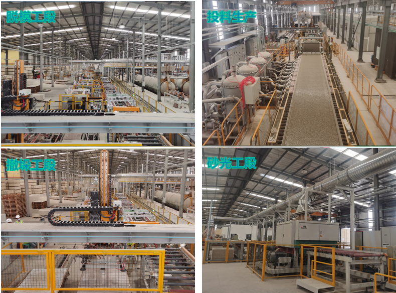 廣東馳陽環保建材有限公司年產50萬立方米加氣混凝土制品生產線建設項目用固體廢棄物作為原材料的國內首條雙澆注大產能生產線,設置雙澆注系統,提升澆注能力,切割機組的產能完全發揮出來;采用自動配氣系統,提高了加氣混凝土制品的強度,保證產品質量穩定;產線機械化、自動化水平高,生產線設計考慮分工段進行集中控制,大大提高了生產線的效率及產品質量,減少工人的數量和勞動強度,全線自動化控制水平達到國際領先水平。