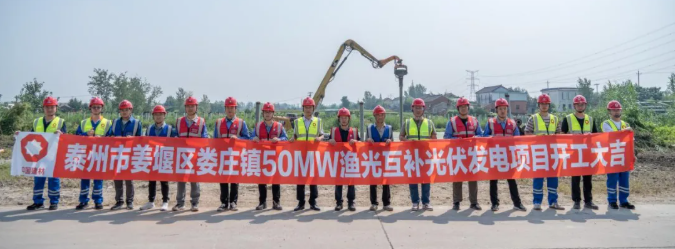 2025年8月23日,江蘇省泰州市姜堰區婁莊鎮的水塘邊,伴隨著施工機械的沉穩轟鳴,第一根樁基精準落位、穩穩植入水底——由京能集團投資建設的姜堰婁莊50MW漁光互補光伏發電項目,在此正式破土動工。姜堰區及婁莊鎮政府領導、京能清潔能源北京分公司代表、武漢建材院項目團隊及各參建單位齊聚現場,共同見證這一集“綠色能源、生態養殖、鄉村振興”于一體的復合型示范項目,邁入實質性建設的關鍵節點。